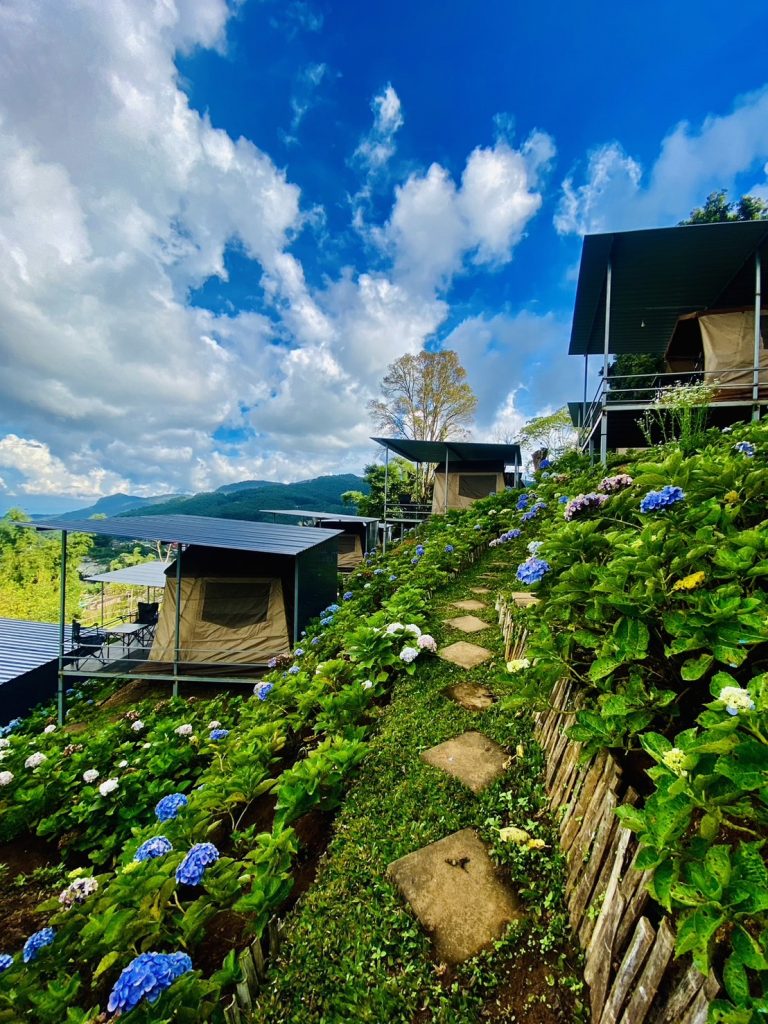ที่พักสไตล์เต็นท์ วิวสวย ดอกไฮเดรนเยียงาม ใกล้แหล่งท่องเที่ยว