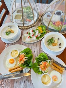 บุฟเฟต์ ข้าวต้ม ขนมจีน ขนมปัง กาแฟ น้ำผลไม้ ขนมไทย ผลไม้ตามฤดูกาล และอีกมากมาย